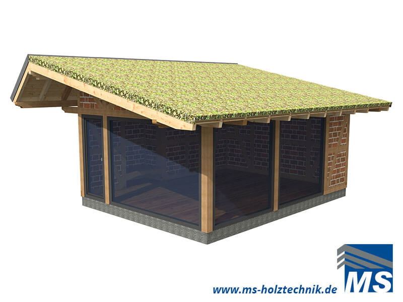 Das Gartenhaus hat eine Grundfläche von 5,90 x 4,60/5,40 m und ist als Fachwerkhaus aufgebaut. Durch die großzügige Fensterfläche erleben Sie Ihren Garten aus dem gemütlichen inneren Ihres Gartenhauses auch in der kühlen Jahreszeit. Auf Wunsch liefern wir auch die Dacheindeckung/Dachbegrünung. Bitte lassen Sie sich beraten, wir erstellen Ihnen hierzu gern ein Angebot.