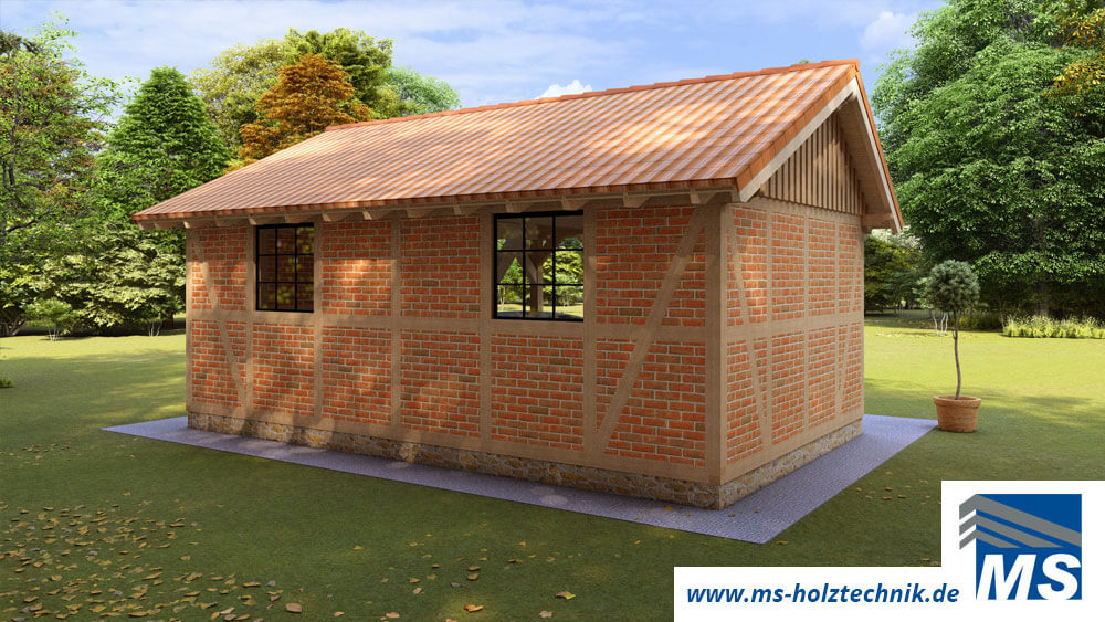 (Das Fachwerk ist zimmermannsmäßig verzapft und abgebunden) - Tragende Hölzer bestehen aus Brettschichtholz (BSH)